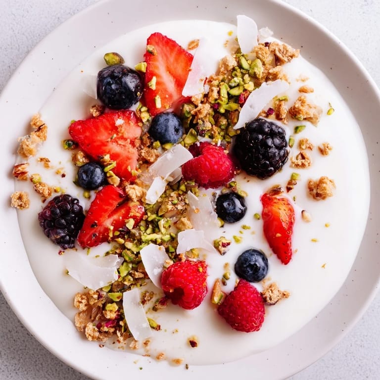 Fresh berries are ideal, but you can absolutely use frozen ones if that's what you have. I've used a mix of blueberries, raspberries, and sliced strawberries, and each combination feels different. If berries aren't in season where you are, dried fruit works too—just chop it small so it distributes evenly. The beauty of this recipe is that it adapts to whatever looks good when you're shopping.