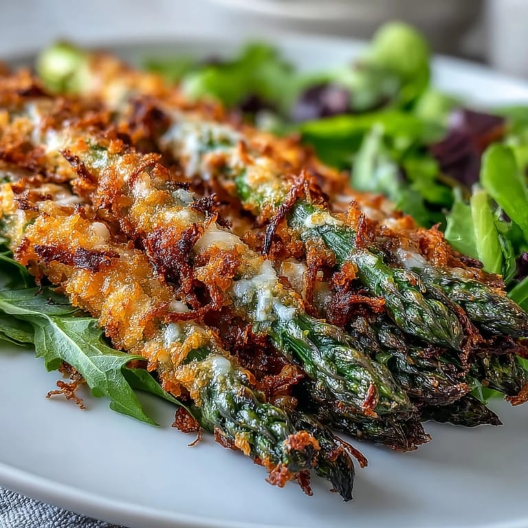 Save to Pinterest There's a moment in spring when the farmers market suddenly fills with impossibly thin asparagus spears, and that's when I know it's time to make this salad. My neighbor mentioned she'd been craving something that felt both light and satisfying, and I remembered how a crispy cheese crust on vegetables can completely transform them from a side dish into something you actually get excited about. This salad came together one afternoon when I had leftover rotisserie chicken and wanted to prove that salads don't have to be boring.