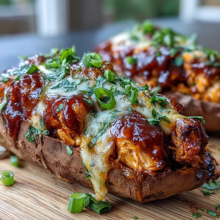 Save to Pinterest There's something about the smell of sweet potatoes roasting that makes everything feel like home, even if you're cooking in someone else's kitchen. I discovered this particular combination on a random Tuesday when I had leftover honey BBQ sauce, some shredded chicken, and a handful of sweet potatoes sitting on my counter. What started as an attempt to use up ingredients turned into the kind of meal that people actually ask you to make again. The golden potatoes split open with steam rising, and suddenly I was layering in warm chicken and melted cheese like I'd been making this forever.