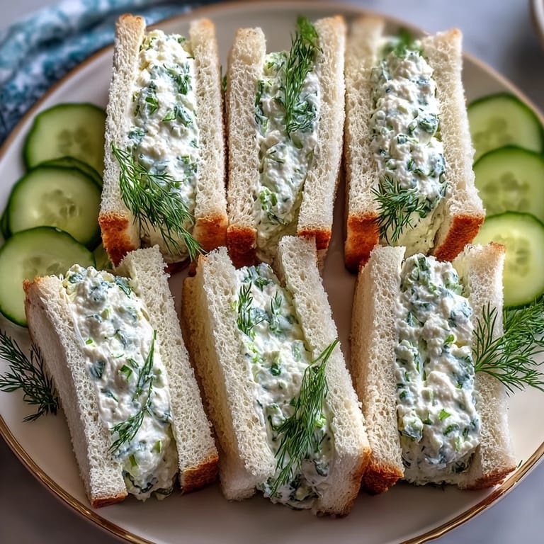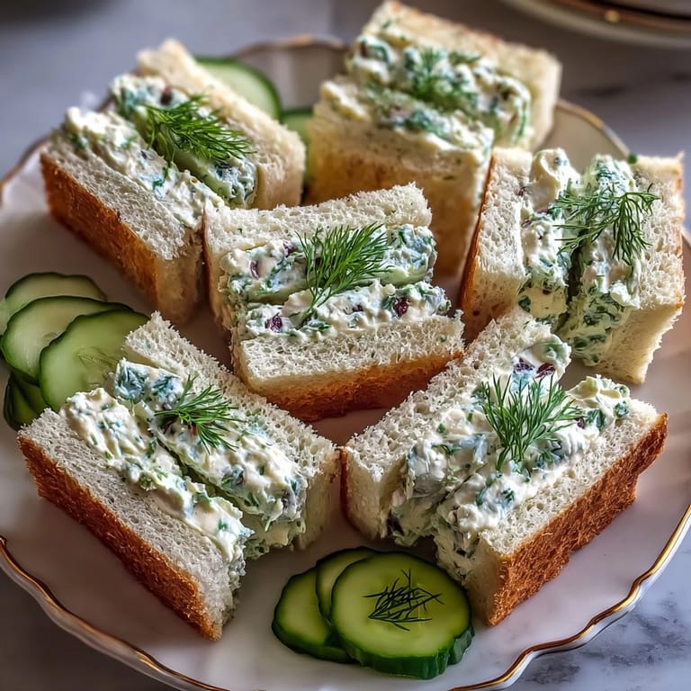 Save to Pinterest These sandwiches combine simple, fresh ingredients with a touch of Southern charm. The Benedictine spread, made from cream cheese, fresh dill, and chives, complements the crisp cucumber for a cool, savory bite. Assembling these sandwiches is quick and easy, making them an ideal choice for both casual and formal occasions.