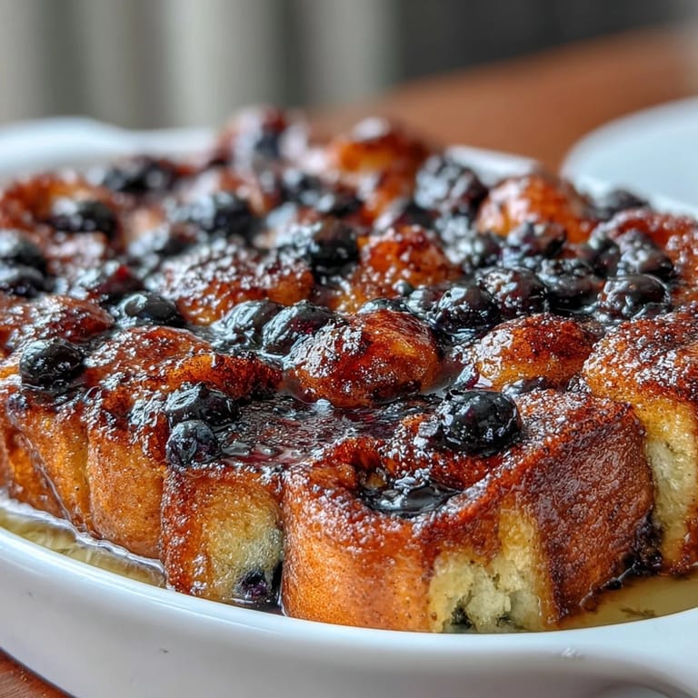 Save to Pinterest There's something about the smell of lemon and blueberries hitting a hot oven that instantly feels like celebration, even on an ordinary Tuesday morning. I stumbled onto this recipe during a season when I was learning to bake with sourdough—you know, that phase where you suddenly have a bubbly starter demanding attention and three loaves going stale before you can eat them. A friend mentioned she'd turned her leftover sourdough into a French toast bake for a small gathering, and I became obsessed with the idea of making it tangy and bright instead of the usual vanilla-heavy version. The first time I poured that lemon custard over the cubes, I watched the bread drink it in and felt like I'd cracked some kind of kitchen code.