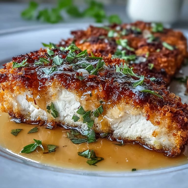 The parmesan flour mixture should almost feel damp when you press it onto the chicken, not powdery dry. I learned that a slightly thicker coating stays put better during cooking and creates that restaurant style crunch people always ask about.