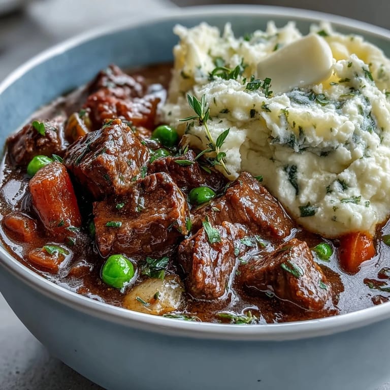 Save to Pinterest There's something about a bowl of beef stew that brings you back to basics, especially when you're trying to eat better without sacrificing comfort. I stumbled onto this lighter version while leafing through an old cookbook on a rainy Tuesday, thinking about how my grandmother used to make hers with potatoes piled high. The cauliflower mash caught my eye as a clever swap, and I was curious enough to give it a shot that weekend. What surprised me most was how the stew's rich, wine-kissed broth actually felt more luxurious served over something lighter, like it was finally getting the attention it deserved.