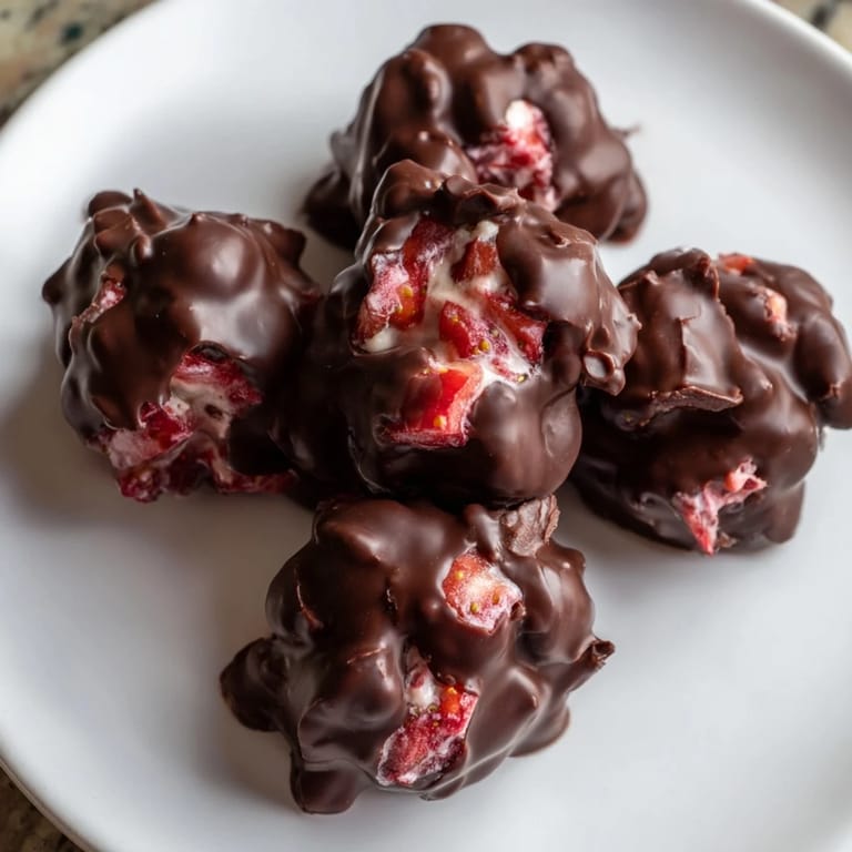 Save to Pinterest One summer afternoon, I was standing in my kitchen with a half-empty container of Greek yogurt and a punnet of strawberries that needed rescuing before they went soft. I'd been craving something cold and satisfying—not just another bowl of fruit, but something that felt like a treat. A friend mentioned she'd made yogurt clusters the week before, so I decided to give it a try. The result? These frozen bites that taste like you're cheating on your diet when really you're just eating fruit and yogurt with a chocolate shell. I've been making them ever since.