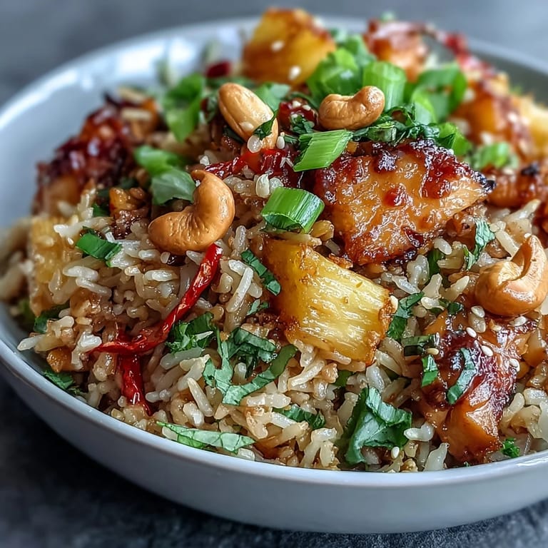 Save to Pinterest This vibrant dish is a celebration of contrasts—tender marinated chicken, crisp vegetables, and juicy pineapple chunks all brought together with a glossy sweet chili glaze. The secret to perfect fried rice lies in using day-old jasmine rice, which ensures each grain stays separate and absorbs the flavorful sauce without becoming mushy. Whether you're cooking for family dinner or entertaining guests, this tropical fried rice delivers restaurant-quality results with home-cooked comfort.
