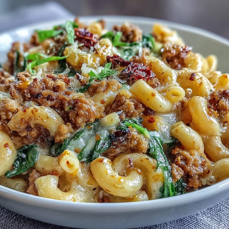 Save to Pinterest There's something about a weeknight when the kitchen fills with the smell of browning meat and garlic that makes everything feel less rushed. I discovered this Creamy Tuscan Chili Mac on one of those evenings when I had half-empty jars of sun-dried tomatoes and fresh spinach that needed using, and I wanted something that felt fancy without the fuss. The result was this unexpected marriage of comfort and sophistication—a dish that tastes like it came from a trattoria but takes less time than ordering delivery.