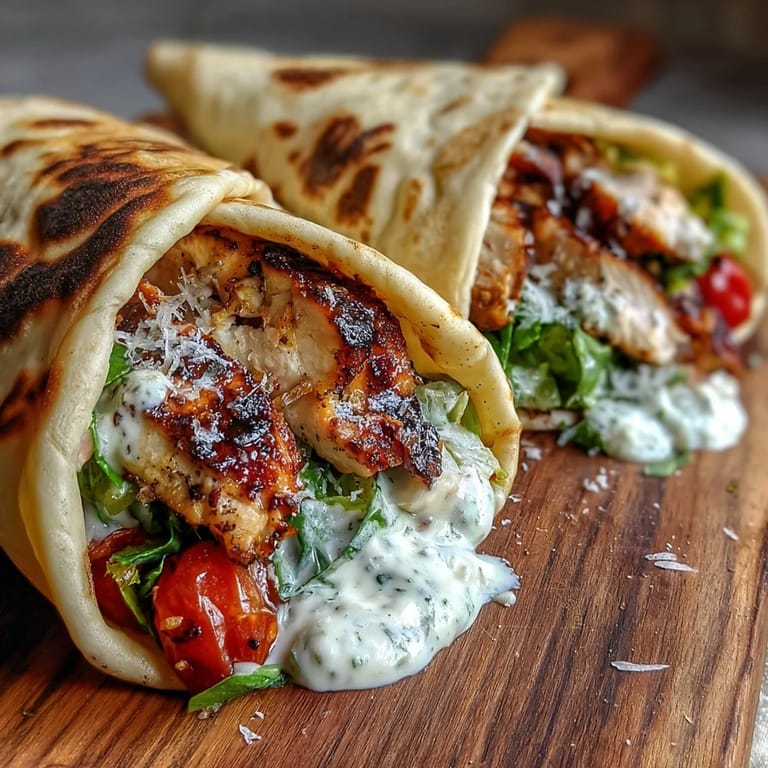 Save to Pinterest My friend Sarah called me in a panic one Tuesday evening—she'd promised to bring dinner to a casual gathering but had nothing planned. I was grilling chicken in my backyard when she arrived, and I remember her watching the charred strips come off the grates with this curious expression. That's when it hit me: why not wrap all the Caesar salad goodness she loved into something warm and handheld? I grabbed a naan from my freezer, brushed it with butter, and within minutes we were rolling up this fusion creation that somehow felt both comforting and exciting. She took one bite and immediately asked for the recipe, which is how this became our go-to weeknight solution.