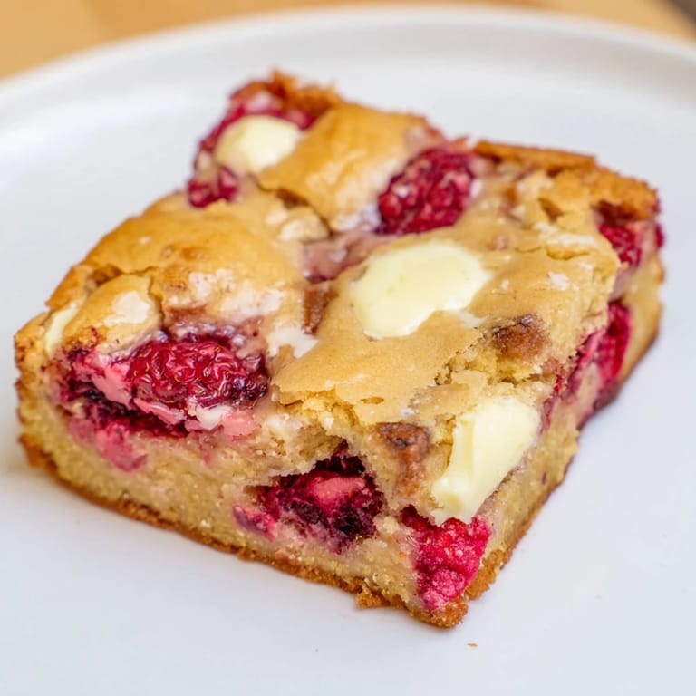Save to Pinterest I baked these blondies on a rainy Saturday when I had a basket of raspberries about to turn and half a bag of white chocolate chips in the pantry. The kitchen smelled like butter and vanilla within minutes, and by the time they came out of the oven, golden and speckled with pink, I knew I'd stumbled onto something special. They disappeared faster than anything I'd made in months.